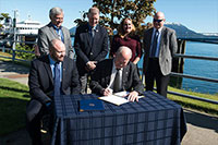 Governor Walker Signs Memorandum of Understanding with Southeast Conference to Improve Ferry System as other officials look on...