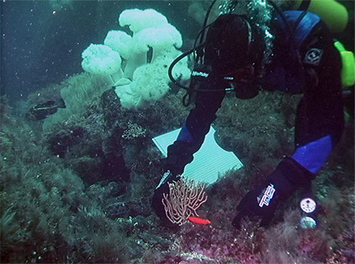 Bob Stone prepares to measure a tagged gorgonian coral colony