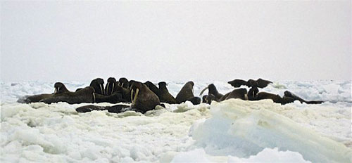 Walruses among sea ice in the Bering Strait region.