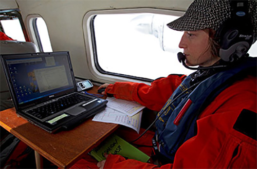 Marine mammal scientist Amelia Brower surveying gray whales from the air.
