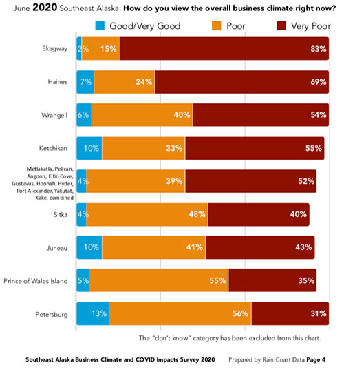 Robert Venables, Southeast Conference executive director reacted to the survey results. “There is no sugar-coating the grim state of our economy. We need to rally around our at-risk businesses and do everything possible to stabilize their situation while working toward an economic recovery. There is no quick or easy fix, but Southeast Alaskans are resilient and have continually bounced back from economic disasters. This survey gives voice to the economic woes but also provides understanding of the needs and challenges we must meet.”