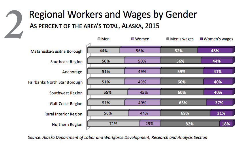Women earn an average of 68 percent of what men make in Alaska