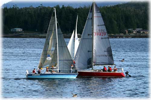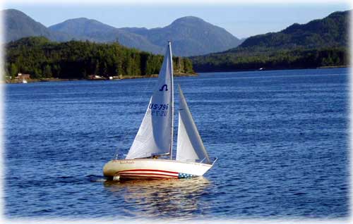 Another important set of technical terms are those that identify the parts of the sails and the actions required to make the sails work properly. For example, to raise a sail you must pull on a line called the halyard, which is attached to the top of the sail. It runs from the top of the sail to a specific spot on the boat and needs to be pulled in order to raise the sail to its full position. Then, once raised, the line holding that sail up has to be locked down so that the sail stays put where it should be. Each action, and each piece of line (rope, for landlubbers) or equipment used in this task, has a unique name and usage. A "halyard" is drawn through the "head" (top) of the sail and is fastened down firmly in a locked position, either on a "winch" or through some type of block that holds it in place. At the loose end of the sail, which is the part that goes from side to side when the boat changes direction, another line is attached, called the "sheet". The sheet is adjusted to make the sail more efficient, which is called "trimming the sail". Wanna-be sailors may think that the technical jargon is mind-boggling and incomprehensible, making it a daunting task to figure out how to get that sailboat moving on the water, but this is not true. Sailing language is sort of like talking to a dog.there are only so many words that apply, so once you learn most of them you are in business! Racing rules, while very complex, do in fact have a common basis, which is safety (avoiding collisions), sportsmanship (no cheating) and fairness. These underlying themes are the foundation for all of the details of each rule, with a heavy dose of common sense as part of the total formula. So.. ahoy there mate! Pull that halyard, sheet that sail and move to the high side, because we are racing this sailboat in the Ketchikan Yacht Club Wednesday night sailboat races!