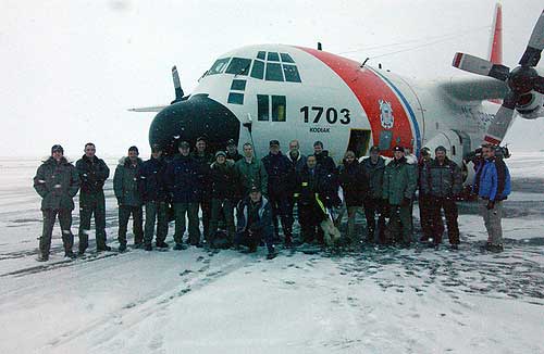 The airplane and crew are from Coast Guard Air Station Kodiak.