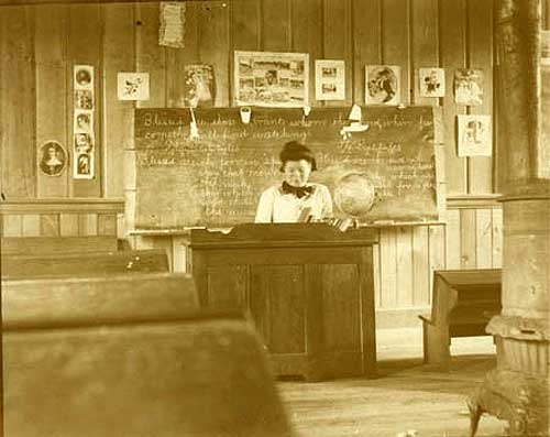 "The company constructed a sawmill with a wharf that unfortunately went dry at low tide," Roppel wrote in 1995's "An Historical Guide to Revillagigedo and Gravina Islands." "Powered by steam, the sawmill had a daily capacity of 15,000 board feet of sawed and planed timber." Initially, the sawmill produced box shooks for salmon boxes for the canned salmon industry which was also just getting started, but soon the area construction boom found the mill primarily supplying lumber for buildings in Ketchikan and Saxman. Local historian June Allen reports that most of the lumber from the original Stedman Hotel on the corner of Dock and Front streets came from Port Gravina. The sawmill was also instrumental in providing lumber for mining and other operations in the Charcoal Point area north of Ketchikan, just across Narrows from Port Gravina. When the village of Port Gravina was started in 1892, Ketchikan's estimated population was under 100 people, which was what the Federal Government estimated Port Gravina's population at in 1895. But Ketchikan soon began to grow, with the help of Port Gravina lumber. By the time it incorporated into a city in 1900, Ketchikan's population was estimated at nearly 1,000 people. In addition to the sawmill, the Port Gravina mill company operated a general store and built a board walk "street" that connected the most of the houses with the sawmill and wharf. An 1895 photograph by B.A. Haldane shows at least a dozen houses located north of the mill. A significant number of other houses were located along a path south of the mill. Federal officials estimated the 1900 Port Gravina population at just under 100 people. In the early years, the residents asked the federal government to establish a post office at Port Gravina but it was never done. A school - however - was built. According to Roppel, it started in fall of 1899 with Alice B. Hamblett as the first teacher. She was followed by Bertha Hunt, the daughter of pioneer Ketchikan photographer Harriet Hunt. The teacher in 1903 was Olga Hilton, according to Roppel. In her book Roppel quoted a government report that Hilton had written which talked about classes in the school. "Other subjects were introduced besides reading, spelling and other work," the report stated. "There were classes in geography, history, temperance, hygiene and all had instruction in English." ![]() Frank Payne of 10 Twin Lakes Drive, Fairfield Ohio sent these photographs to the Wrangell Chamber of Commerce. They belonged to his late mother Mrs. Ina Walton, who was at the age of 19 taught school in this area. He asked that they be forwarded to interested persons. The Photographs are of Gravina Island. Photo courtesy Ketchikan Museums