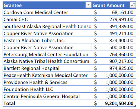 (Updated: 10/29/20) Southeast Alaska: Alaskan Healthcare Organizations Receive $9.7 Million from Coronavirus Nonprofit Relief Fund - The State of Alaska Department of Health and Social Services (DHSS) and The Alaska Community Foundation (ACF) have awarded $9.7 million from the Coronavirus Nonprofit Relief Fund (CNRF) to twelve healthcare organizations across Alaska including Southeast. These funds are in addition to the $40 million allocated to the CNRF granting process.