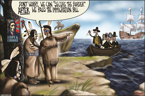 "Well, Billy, in 1492, Christopher Columbus sailed from Europe to America and founded the very first European settlement in the New World. His arrival marks the beginning of America as we know it." "But didn't he discover America by accident, dad?" "Columbus believed the Earth was a sphere. He thought he could reach the Far East by setting off on a westward course. Though he stumbled upon what is now the Bahamas by accident, he was still a successful explorer, Billy." "Successful, dad, or a racist oppressor?" "Pardon me, son?" "When Columbus came to America, he brought with him the greed of the white European males who subsequently colonized America for the dough. They fought and killed the Indigenous Peoples who were already here and took their land and their gold. Columbus eventually died a very rich man."