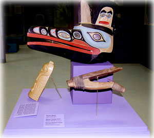 rattle by Tlingit carver Norman Jackson; and Aleut Hunter,